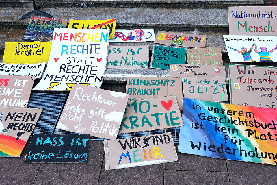 Schon im vergangenen Jahr beteiligten sich unter dem Motto „Nie wieder ist jetzt“ Millionen Menschen in ganz Deutschland an Demonstrationen, Mahnwachen und Kundgebungen für Demokratie und Vielfalt. Im Ammerland unterstützte der ADFC die Demonstrationen, bei denen unter dem Motto „Demokratie feiern!“ oder „Ammerland wählt demokratisch“ insgesamt mehr als tausend Menschen auf die Straße gingen.