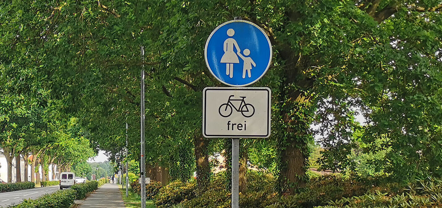 Die meisten ehemaligen gemeinsamen Fuß- und Radwege im Ammerland wurden in Fußwege umgewidmet. Das Zusatzzeichen "Radverkehr frei" bedeutet, dass Radfahrer auf dem Gehweg fahren dürfen - aber nicht schneller als Schrittgeschwindigkeit.
