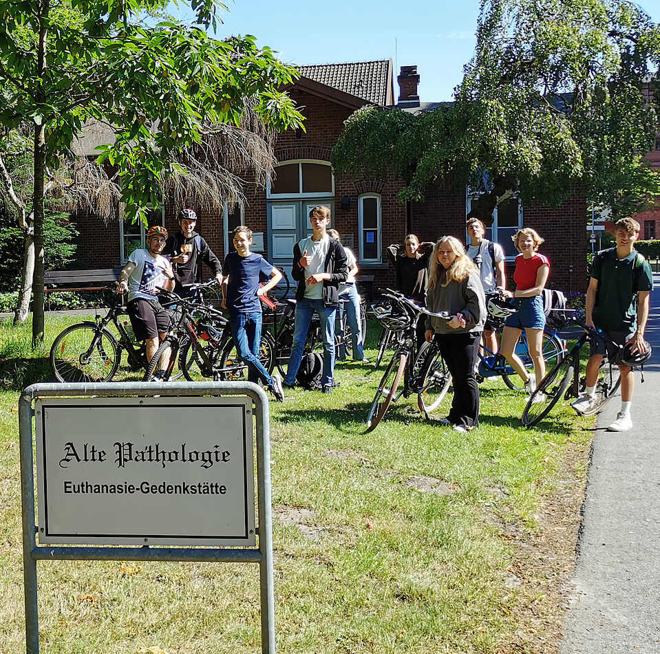 Eine Radtour führt von Rastede nach nach Wehnen und Ofen (Gemeinde Bad Zwischenahn) und widmet sich den oldenburgischen Krankenmorden in der ehemaligen „Heil- und Pflegeanstalt“ auf dem Gelände der heutigen Karl-Jaspers-Klinik. Bei der Führung durch die Gedenkstätte erhielten die Schüler*innen Informationen über die systematische Ermordung von psychisch Kranken in der Zeit des Nationalsozialismus. Die zweite Radtour trägt den Titel „Rastede in der Zeit des Nationalsozialismus“ und führt durch den Rasteder Kernort und zum Ortsteil Hahn. Der Rundkurs umfasst zehn Stationen, die drei Themenschwerpunkten zugeordnet sind: (1) Das Schicksal der Rasteder Juden, (2) Kriegsgefangene und Zwangsarbeiter*innen in Rastede, (3) Rasteder Nationalsozialist*innen. Viele Stationen, wie das Rasteder Palais und das Schloss, die Firma August Brötje oder das Vorwerk-Gelände sind den Rasteder*innen wohlbekannt, die Informationen dazu mussten die Schüler*innen dagegen in mühsamer Kleinarbeit aus Büchern und Aufsätzen zusammentragen. Dabei stellten die Schüler*innen auch fest, wie schwierig es ist, überhaupt Informationen zu finden.