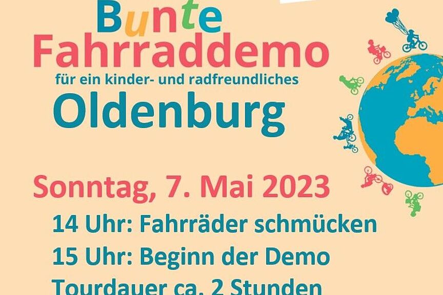 Der ADFC Oldenburg ist Mitorganisator der Kidical Mass in Oldenburg. Die nächste Kidical Mass startet am Sonntag, den 7. Mai um 15 Uhr auf dem Pferdemarkt (Schmücken der Fahrräder ab 14 Uhr).